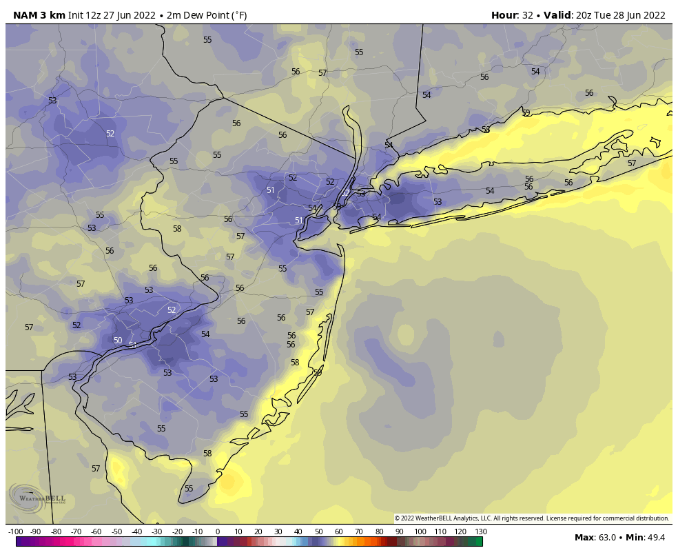 3km NAM model shows dewpoints in the 50s Tuesday afteroon!