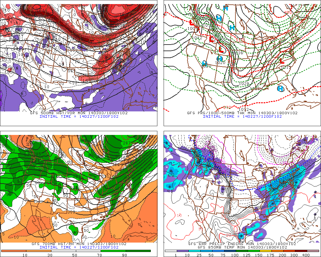 A strong thermal gradient form between along the artic boundary, as the Southern Plains low being to track NE and push warmer air over a very cold airmass support by a polar vortex over Southeast Canada and large, strong high pressure system to north. Just north this gradient, is where snowfall rates will be higher due to isentropic lifting. This is important for significant snowfall to occur, especially during the daylight hours on Monday. Surface temperatures will also lower 20s and teens throughout the region. So there will be some accumulation, despite the stronger sun angle in early March. Anywhere, south of this gradient, snow changes over to sleet, freezing rain, or plain rain near the coast. These details will be fined tuned as get closer.