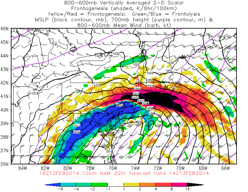 NAM frontogenesis forecast for the morning of 2/13/14: