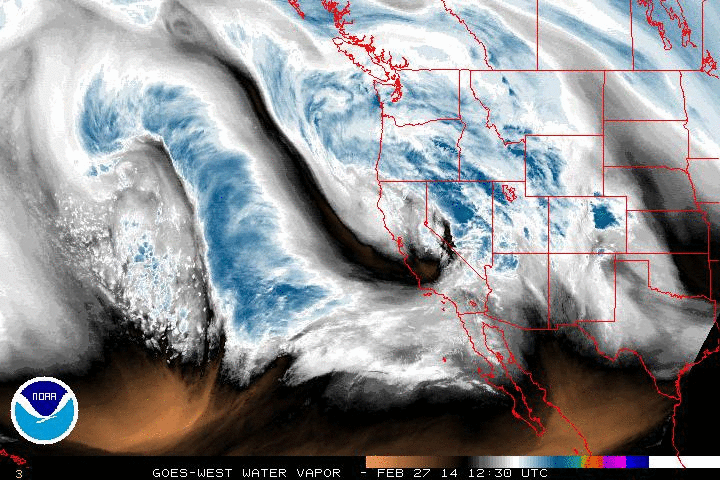 This afternoon’s water vapor of the storm now in the Pacific: