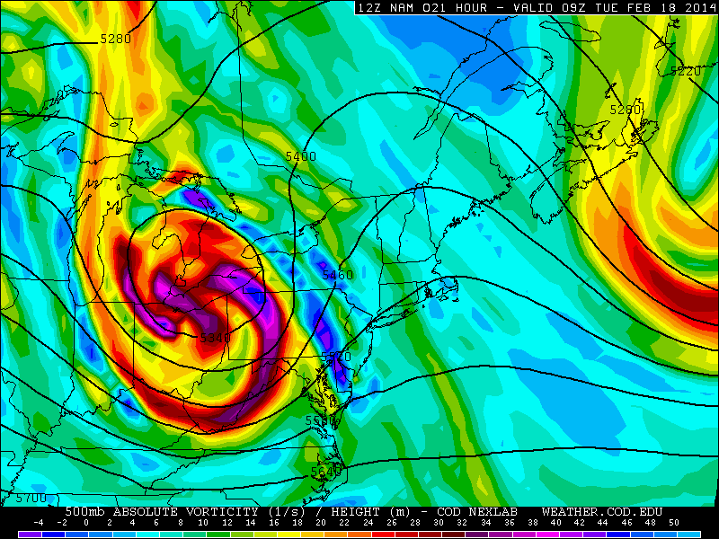 Precipitation with this system should arrive late tonight. There will be enough cold air in place, for everyone to start as accumulating snow. However, a low-level southeast flow increases, enough warm air arrive to change coastal sections to rain or drizzle before ending tomorrow afternoon. Exactly when this happens and how snow fall before it, is problematic as mesocale models such as the NAM and RGEM are showing more liquid amounts than the global models. As they develop secondary low faster. Dynamics may also come into playing in keep boundary level temps cooler. The NAM model shows strong upward vertical velocities and mid-level instability (H5-7 lapse rates 7.1 C/km and total totals in upper 40s) that would result in band producing 2-3″ per snowfall rates tomorrow morning with perhaps some thunder, before any changeover. The shortwave energy with system is also very potent. At this time, I will stay under the NAM’s totals. But if the NAM is correct, or the changeover is delayed, snowfall totals could be a few inches higher than on snowfall map.