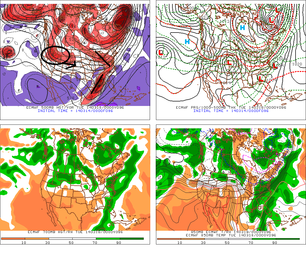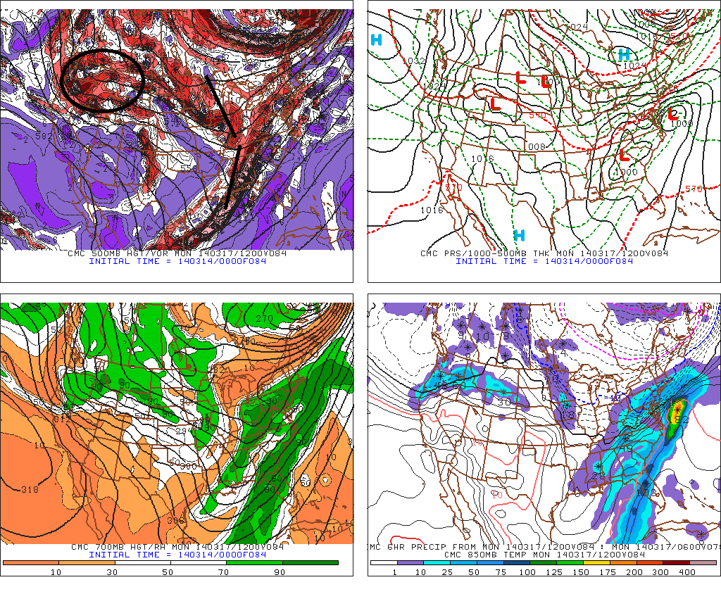 The 0z CMC model is showing more southern stream energy coming out and interacting with northern stream energy. This results in a stronger first wave and the second wave coming further north. The reason this can happen here, is that Pacific system is little slower coming into the Northern Rockies. Strong high pressure will also be supply us with cold air and enhance a thermal gradient just to our south.. This solution would result in moderate to significant snowfall for much of the tri-state area.