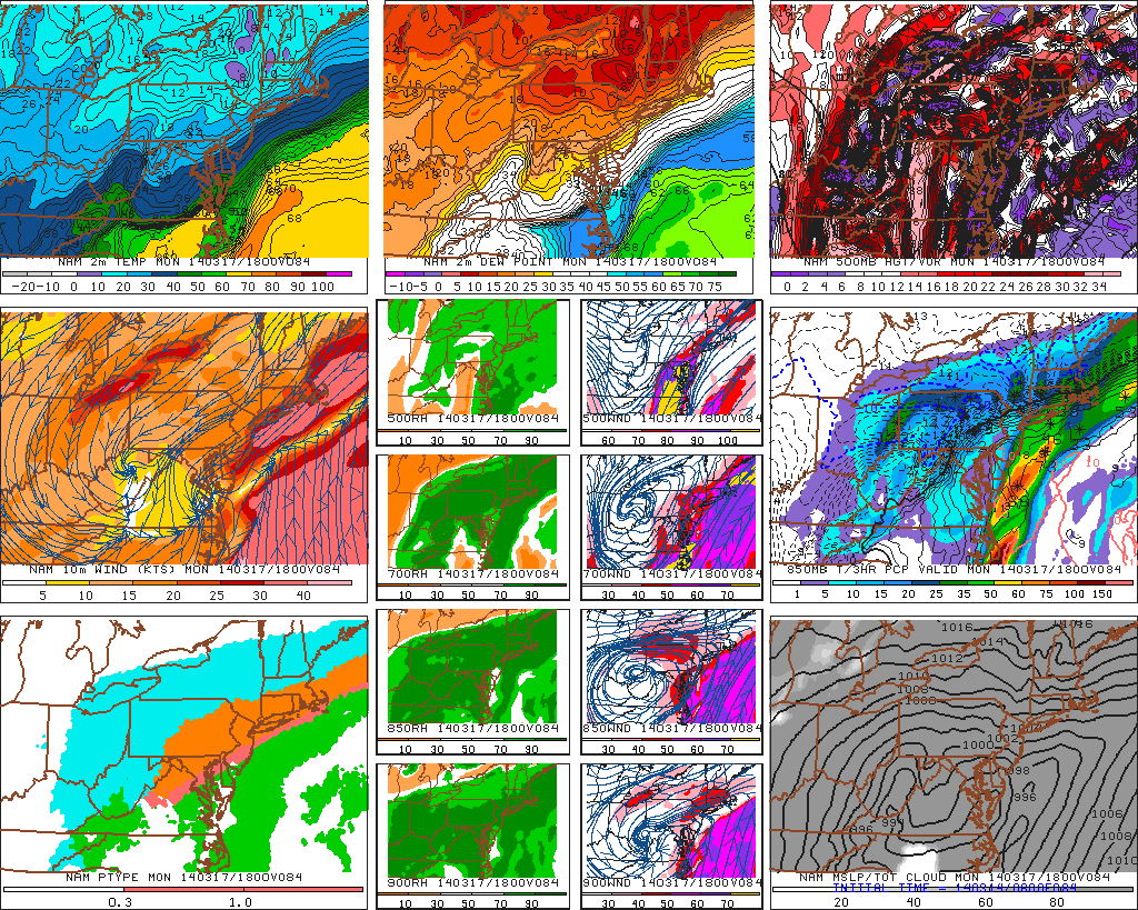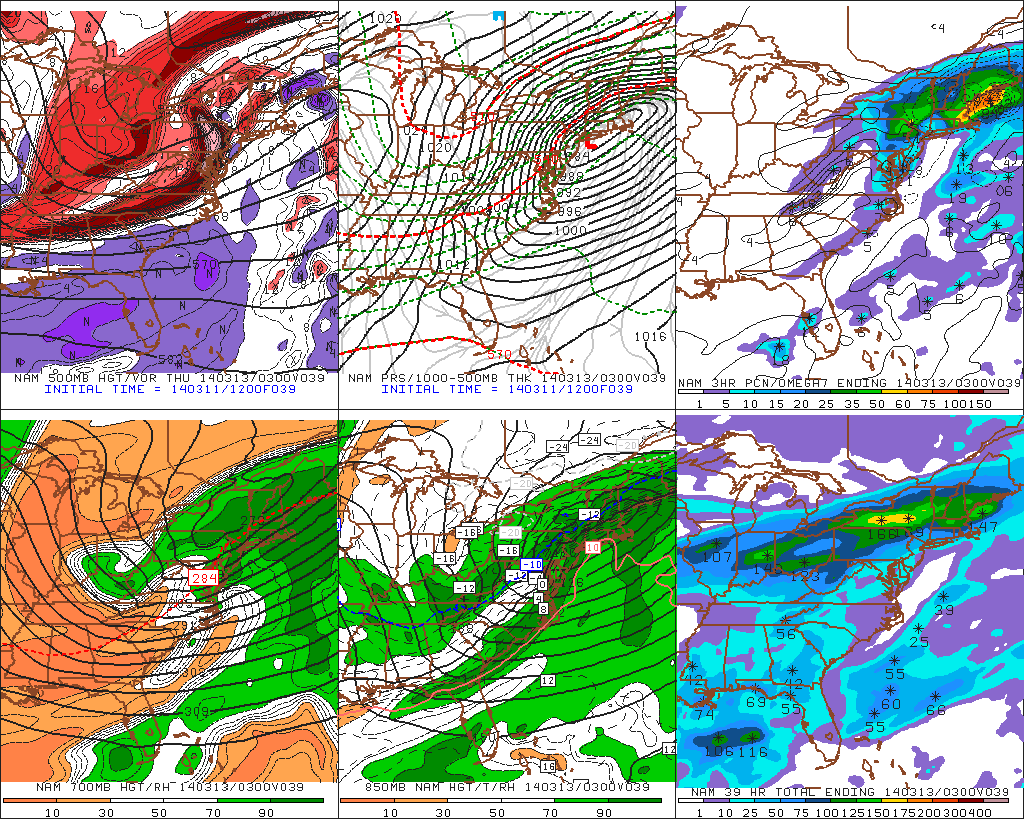 The 6z NAM has more phasing between northern and southern streams. Therefore has more consolidated storm, tracking further west. The reason it is able to do this, is because Pacific system is much slower coming into NW coast and heights remain stronger over Northern Rockies. This solution would actually cause more warmer air to surge aloft, changing many of us over from heavy snow to sleet or freezing rain: