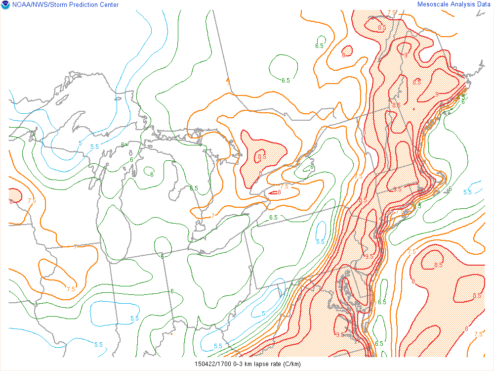 A wind gust to 71mph was reported Philadelphia International Airport yesterday , with a band of showers and embedded thunderstorms along a cold front. This was the forth highest wind gust ever recorded, at the airport. Other strong winds gusts between 55 mph and 65 mph gusts occurred over other parts of Southeast Pennsylvania, and central and southern sections of New Jersey. Some wind gust 45mph-55mph range were recorded some sites over northern New Jersey, the Lower Hudson Valley and New York City. Many of these showers and thunderstorms had weak updrafts due a lack of substantial moisture and CAPE. However, very steep lapse rates helped mixed down stronger winds aloft. This band begin to weaken, as it moved into a more stable marine airmass over over Long Island and Southern Connecticut. More information is below from courtesy of sites such as Storm Prediction Center, Wunderground and the National Weather Service: