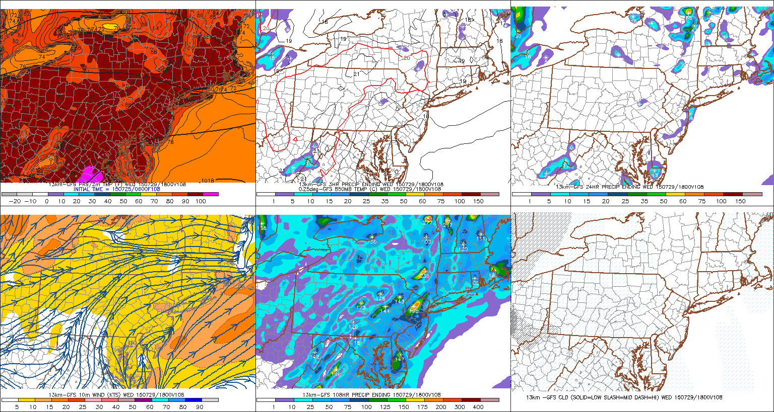 Before that though, this weekend still looks like it will start with the same pleasant weather we’ve been experiencing. Mostly sunny skies are expected during the day today. This will help temperatures rise into middle to upper 80s again with low humidity. Some clouds may increase this evening, ahead of an weak upper-level disturbance and warm front passing by the area. This may trigger a few scattered showers during the overnight hours or early morning Sunday. Some sunshine is expected later tomorrow morning into the afternoon, with temperatures into middle to upper 80s, away from the shores. The biggest difference on Sunday will be an increase in humidity. So it will not be as pleasant. A weakening cold front approach from northwest will also support a threat for some widely scattered showers and thunderstorms during the mid- late afternoon and early evening hours. The best chance of this activity occurring will be over Northern New Jersey and the Lower Hudson Any thunderstorm that forms will be capable of producing heavy rainfall and frequent lightning. Low speed shear doesn’t support organized severe thunderstorms. However, with moderate instability, pulse severe thunderstorms with large hail and damaging winds are possible.