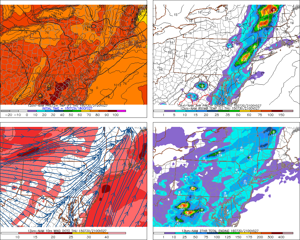Tomorrow, a stronger south-southwest flow will bring more humidity into area. A shortwave trough and cold front will be moving through the area. These systems cause more clouds to mix with sunshine and some scattered showers and thunderstorms to develop during tomorrow afternoon and evening. With less sunshine, high temperatures will likely be in the upper 80s to lower 90s. So an official heat wave prove to be elusive for parts of the area again–including Central Park.